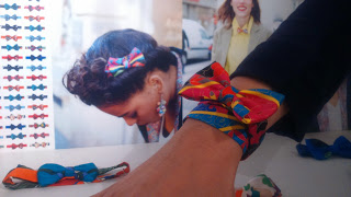 La primera vez que pudimos ver esta acertada propuesta fue en la Maison des Carrés (traducido como Casa del pañuelo de seda), un pop up que abrió la firma francesa en mayo en Barcelona. Un espacio efímero de dos pisos en el que aprender mil maneras de lucir un pañuelo de seda era sencillo y muy divertido. También pudimos disfrutar de sus talleres de origami, el tocador de pajaritas, un fotomatón y Hermèsmatic, un espacio con lavadoras para teñir pañuelos en 48 horas.