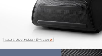 Está disponible en dos tamaños y en cuatro tonalidades: negro con el interior plateado, azul con interior plateado, negro con interior azul y gris con interior plateado. Su diseño es minimalista y una de sus características más innovadoras es la inclusión de una mecanismo de dispersión del peso basado en los sistemas de suspensión que se encuentran en los coches de carreras más modernos. Lo que se traduce en una menor sensación de peso y protección de los golpes a lo que llevemos en el interior. Por ejemplo, nuestro portátil, ya que la mochila tiene un espacio especialmente creado para él. Su base también es resistente y en su interior cuenta con diferentes compartimentos para guardar todo lo que queramos llevar de forma organizada.