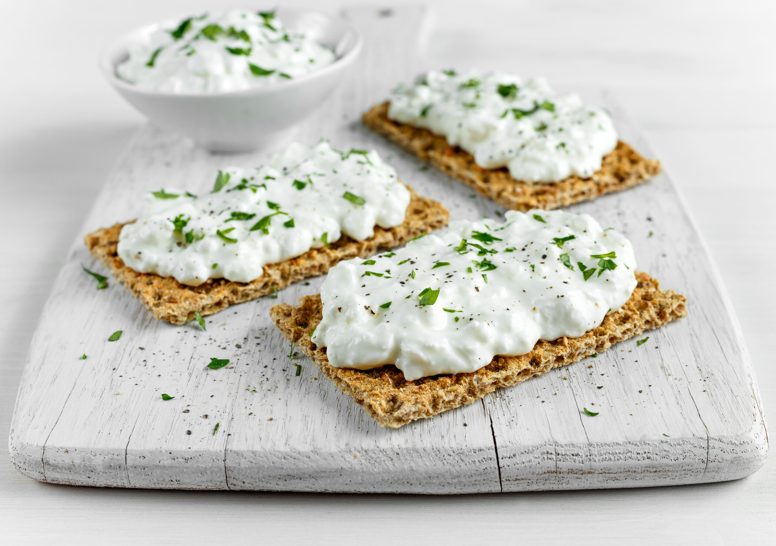 El queso Cottage o requesón no es el que más cantidad de proteína tiene pero sí es el que presenta un mejor balance. Bajo en grasas y calorías, puedes disfrutarlo solo con un cracker como base o combinado con frutas o semillas para variar la textura.