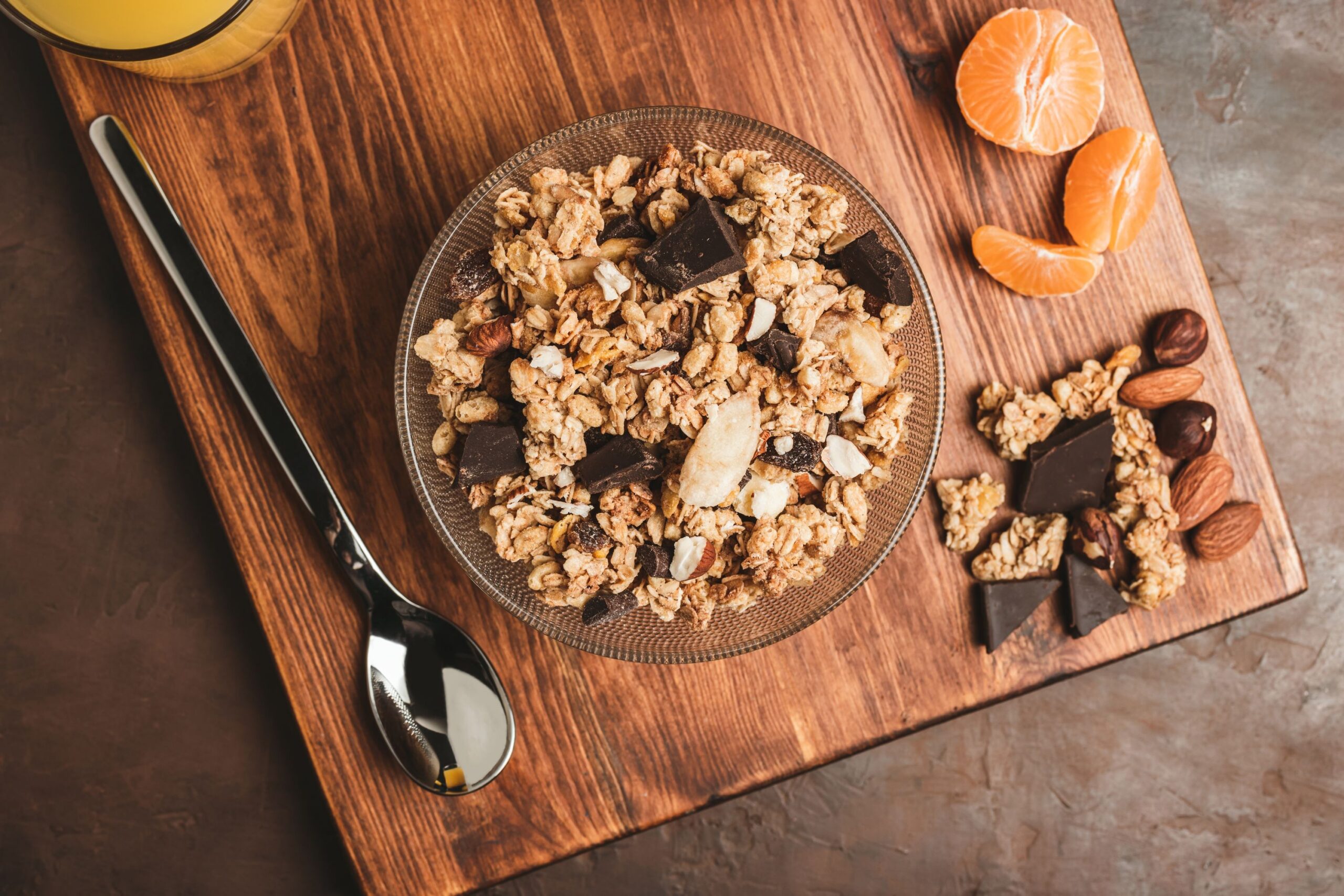 El muesli es una mezcla de frutos secos, los cuales tienen un alto contenido en proteínas. Si además quieres hacerlo aún más rico puedes añadirle trocitos de chocolate negro.