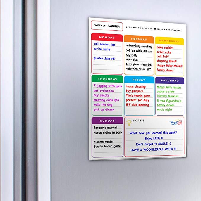 Calendario magnético para planificar las comidas: la planificación es la clave para el éxito del batch cooking. Para ello hazte con una pizarra magnética que colgar en la nevera, tendrás siempre a la vista la comida que te toca al día siguiente. Puedes dividir los días en dos y y anotar ideas para la semana siguiente. Te ayudará a crear un menú variado y equilibrado, mejor que si piensas las recetas sobre la marcha y no tienes en cuenta las comidas que has hecho los últimos días.