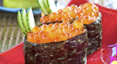 - Gunkan con huevos de salmón: 35 calorías