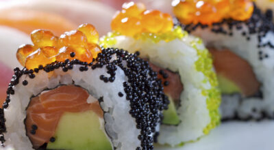 - Sushi con huevos de salmón: 35 calorías