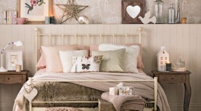 Consejo: dale un toque vintage a tu habitación, añadiendo adornos como corazones o estrellas en tonos neutros o hechos de madera envejecida. También puedes incorporar flores.