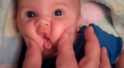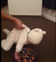 5. La carita del bebé se convierte en una bola de plastilina en sus manos
