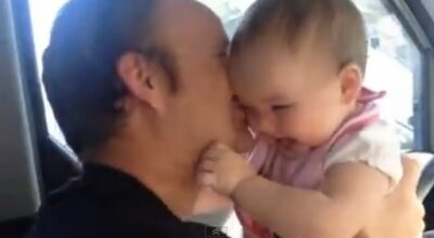 Hasta los hombres más duros se vuelven de lo más sensiblones y sentimentales cuando reciben el cariño y los besos de sus bebés.
