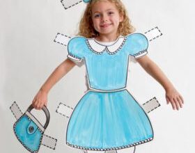 > De muñeca recortable: una lámina grande de papel blanco y dibujar una muñeca de las que recortábamos cuando éramos pequeñas para vestir a nuestro antojo. Lo único que te hace falta es tener un poco de arte para dibujar, pero de verdad que es facilísimo. Como toque final, haz un agujero en la parte de la cara para que la niña pueda sacar su carita y voilá… ¡Disfraz hecho!