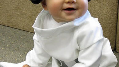 > De Frida Kahlo: tan solo te hará falta un pañuelo tuyo y unas flores de plástico. Puedes bien pegar o enroscar algunas flores de plástico a una diadema, que puedes encontrar fácilmente en cualquier tienda de cosas de casa, ponerle el pañuelo por encima de los hombros y pintarle el entrecejo tan característico de este personaje femenino. ¡Lista para triunfar en la fiesta!