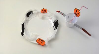 Aquí tienes otra variedad de telaraña que también puede que te guste hacer para combinar la anterior. Es muy fácil de hacer y tan solo te llevará 5 minutos realizarla. Por supuesto, con la ayuda de los peques todo será más fácil, divertido y entretenido.