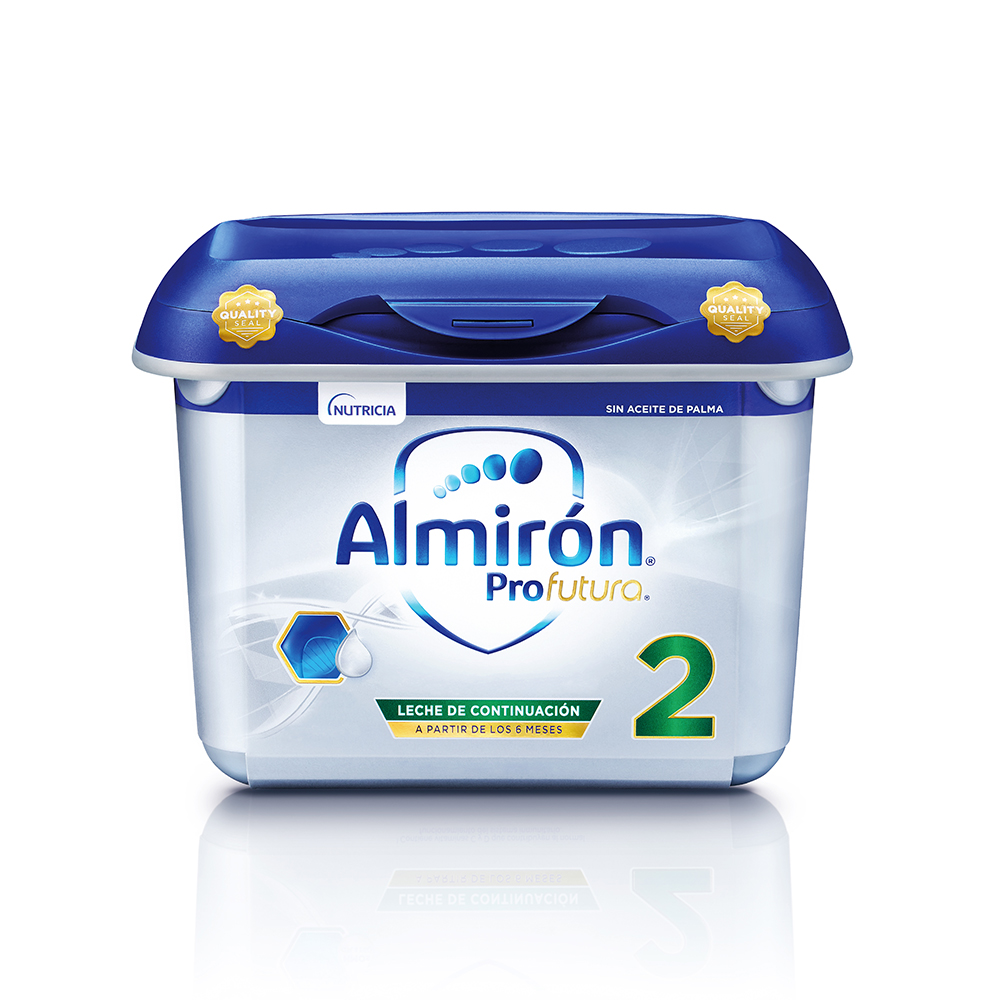 Nuestras expertas destacan de Almirón Profutura 2 que su formato es limpio, cómodo y seguro, y te permite preparar el biberón con una sola mano. Solo tendrás que cerrarlo inmediatamente después de añadir la toma, agitarlo con energía verticalmente, ¡y listo! El envase, además, contiene un enrasador para diestros y zurdos, y su apertura minimiza el contacto con el polvo.