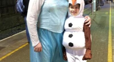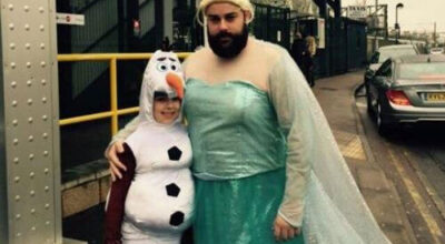 Este padre tan valiente (porque hay que serlo para salir a la calle así), ha declarado al Daily Mail que no se lo pensó dos veces: «Para acudir al sing alone los niños tenían que ir disfrazados, y pensé que yo también. Ruby me dijo: ‘tu irás de Elsa’, así que me tuve que hacer el vestido a medida porque como soy un tío tan grande no lo pude encontrar de mi talla«. ¿A qué niña no le gustaría tener un padre así?
