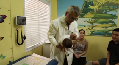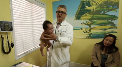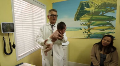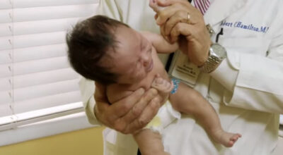 En el vídeo aparece dicho doctor aplicando su técnica a dos bebés que lloraban desconsoladamente y ante la gran sorpresa de sus padres, ésta funciona.