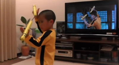 En el vídeo podemos ver al niño cómo imita exactamente igual todos los movimientos del actor con la pantalla de televisión detrás en la que se está proyectando la película y en ningún momento el niño se da la vuelta para mirar. ¡Es alucinante! El pequeño es un mini clon que va vestido igual que Lee y hasta imita sus gestos faciales. Podríamos decir que se trata de un pequeño homenaje a este gran actor que aunque falleció hace 40 años todavía hoy sigue muy presente. ¡Disfruta del vídeo!