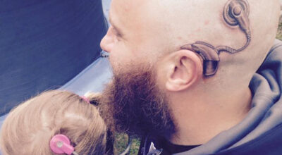 Pues bien, el padre decidió solidarizarse con su hija rapándose la cabeza y haciéndose un tatuaje simulando un implante como el que lleva la pequeña. Una muestra de amor que Alistair afirma al periódico New Zealand Herald: “Realmente lo hice por amor a ella. Mi pelo volverá a crecer”.