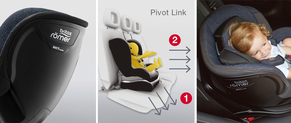 Las sillas de Britax Römer, además, incorporan un sistema Isofix con Pivot Link, patentado por Britax, que, en un primer momento, dirige la fuerza del impacto hacia abajo, empujando la silla contra el asiento del vehículo y absorbiendo la energía, para a continuación ir hacia delante, más suavemente. Así se reduce el riesgo de lesiones en la cabeza y el cuello.