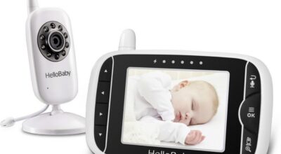 HelloBaby HB32 Monitor Inalámbrico de Vídeo: Pantalla de 3,2″. Te permite comunicarte con tu bebé gracias al micrófono incorporado. También reproduce canciones de cuna que ayudarán a tu bebé a dormirse profundamente. Gracias a las lámparas de visión infrarroja puedes vigilar al bebé, incluso sin luz. Incluye medidor de temperatura. Comprar en Amazon por 89,99€.