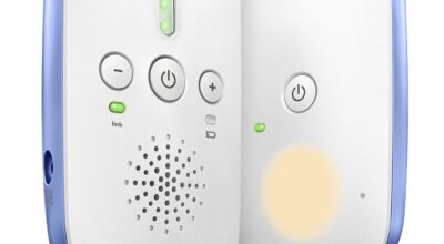 Philips Avent SCD501/00 – Vigilabebés digital: vigilabebés de audio, sin cámara, para controlar si tu bebe llora durante la noche. Los pilotos de nivel de sonido indican si el bebé hace ruido: las luces se activan para indicar el nivel de sonido de la habitación del bebé, incluso con la unidad de padres en silencio. Alcance en interiores de hasta 50 m; alcance en exteriores de hasta 300 m. Comprar en Amazon por 50,57€.
