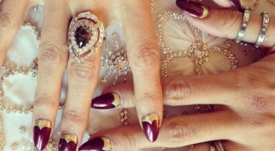La extravagante cantante da muestra de su gusto por los excesos con esta manicura acompañada de todo tipo de bisutería.