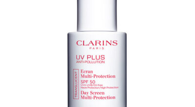 UV Plus Anti-Pollution, Écran Multi-Protection SPF 50 de Clarins.