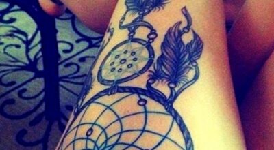 Tatuajes para muslos y piernas. Un tatuaje en forma de cazasueños en tu muslo.