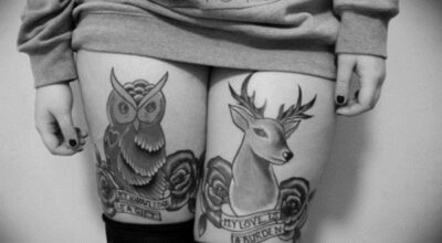 Tatuajes para muslos y piernas. Tatuaje en ambos muslos para amantes de los animales.