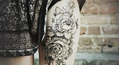 Tatuajes para muslos y piernas. Rosas en el muslo.