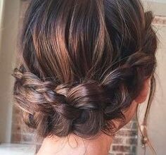 ¿Te imaginas ir peinada en tu boca como una auténtica princesa? Este peinado es elegante y muy favorecedor, tanto en pelo largo como corto y el grosor de las trenzas puede ser el que tú prefieras. Debes empezar una trenza a cada lado de la cabeza de forma que bordeen tu rostro. Cuando llegues a la altura de la oreja, tienes que cambiar la dirección hacia la parte trasera, el punto en que se unirán. Al igual que en otros recogidos, es preferible que las unas y sujetes con horquillas, ya que el resultado será más estético que en el caso de que usases una goma elástica. ¡Es muy fácil! Si escoges este peinado para la ceremonia de tu boda y quieres ponerle el broche de oro, puedes decorarlo con joyas, con una corona o con flores. ¡Todas las futuras novias copiarán tu peinado!