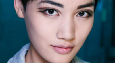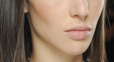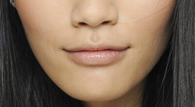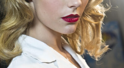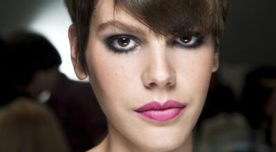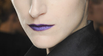 Púrpura en los labios y fucsia en los párpados. Además, marca y define bien las cejas.