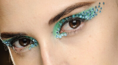 Como se aprecia, para el maquillaje también puede ser todo un protagonista y, si quieres algo aun más atrevido, intensifica el efecto con unos diamantitos de imitación, tono sobre tono o de otro color.
