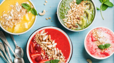 ¿No se te ocurren platos? Te damos algunos ejemplos: cuscús con verduras, pasta con salsa pesto, hummus con palitos de zanahoria, ensalada con aguacate, porridge de avena con frutas, arroz con verduras, smoothies de frutas… Y la lista podría continuar con muchos otras recetas como los bowls veganos que te mostramos a continuación…