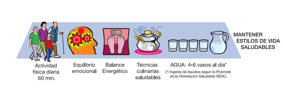 Este es otro de los cambios que se han introducido en la nueva pirámide: en su base, la SENC recomienda 60 minutos diarios de actividad física de intensidad moderada, una alimentación consciente basada en los principios del Mindful eating y cocinar de manera saludable. Es decir, al vapor, a la plancha, al horno… evitando, por ejemplo, freír los alimentos. El agua también supone una clave importante: lo ideal es beber 2,5 litros al día, una cantidad que deberíamos aumentar en el caso de practicar deporte.