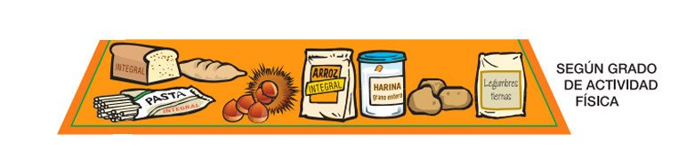 Los alimentos que aparecen en este nivel son ricos en hidratos de carbono (aportan energía a nuestro organismo) y deberíamos tomarlos a diario. Entre ellos se incluyen los cereales de grano entero, la pasta, el arroz (integral, a poder ser), la patata o las legumbres como las lentejas o los garbanzos. Eso sí, debemos prestar atención a las cantidades en las que los comemos, pues si no realizamos ejercicio físico de poco servirá la energía que estos alimentos nos aportan.