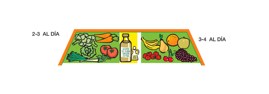 Verduras, frutas y aceite de oliva forman este escalón de la pirámide de la alimentación. Todos ellos deberíamos consumirlos también de manera diaria. Sumando la fruta y la verdura estas deberían dar cinco raciones diarias. Una cantidad que podemos consumirla en guisos, guarniciones, acompañamientos, ensaladas, cremas o incluso en batidos. En cuanto al aceite de oliva, lo ideal sería consumir unas dos cucharadas al día.