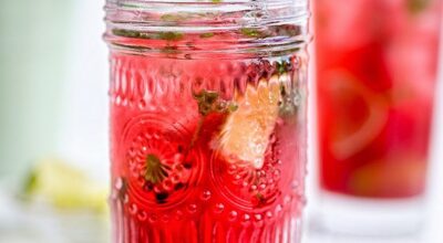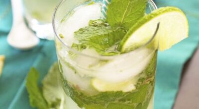 Cóctel de champán, whisky y hierbabuena