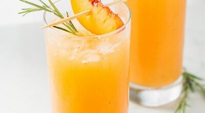 Cóctel de champán, melocotón y uva