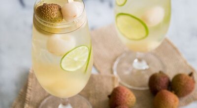 Cóctel de champán, granada y lichis
