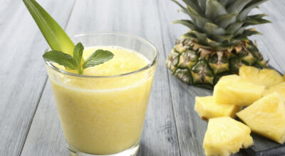 Su sabor dulce, su textura tan característica y la gran cantidad de agua que contiene, convierten a la piña en una de las frutas que más nos gusta. No solo es perfecta para un aperitivo ligero de media mañana, sino que además nos encanta añadirla a nuestras ensaladas, por ejemplo. ¿Has probado alguna vez a comerla así? También es una fruta perfecta para batidos y postres como estos: