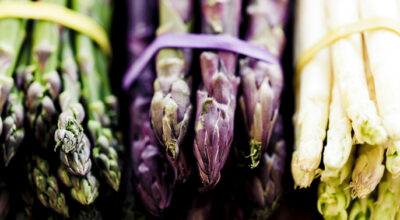 Para empezar, echamos un chorrito de aceite de oliva en la sartén y vertemos la cebolla morada bien picadita y el puerro también troceado. Mantenemos a fuego lento y cuando comience a estar transparente, agregamos los trozos de espárragos verdes y mantenemos en el fuego durante unos 10 minutos aproximadamente.