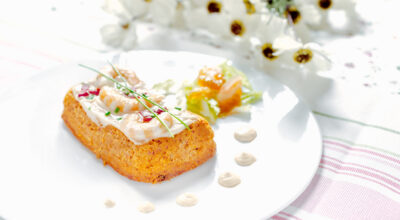 ¡Atenta al menú de Navidad que te proponemos! Comenzamos abriendo boca con unos cremosos rollitos de salmón, queso y gambas, para saborear, seguidamente, un suave pastel de merluza con pequeñas tostas de pan de centeno de masa madre. Como plato principal te proponemos el clásico pavo de Navidad, pero con un relleno nada habitual: paté con nueces. Para poner el toque dulce sin recurrir a lo de siempre, ¿probamos un semifreddo de turrón? Ya para poner el broche de oro final, y para acompañar el café o el cava, servimos algo muy nuestro: mazapanes caseros.