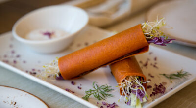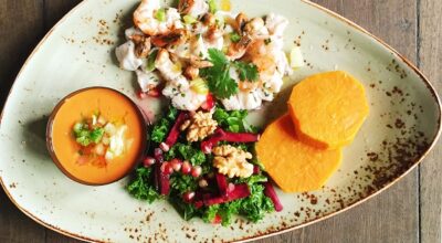 ¿Qué encontraremos en nuestro plato? Propuestas irresistibles, como la pechuga de pollo a la plancha con crujiente de romero y parmesano, pimientos rojos asados en ensalada, tallarines de calabacín con vinagreta de tomate y ensalada de quinoa, pasas, pepino y zanahoria. Si prefieres una crema, prueba la de maíz con crujiente de zanahoria, acompañada de salmón en papillote con vinagreta de cítricos y enebro, ensalada de espinacas baby con nueces, queso fresco y vinagreta de miel. Pero si tuviéramos que elegir un plato, ese sería el tataki de atún rojo de almadraba marinado en soja naranja con sésamo, ajo blanco de temporada con uvas y ensalada de kale con vinagreta de granada. ¡Espectacular!