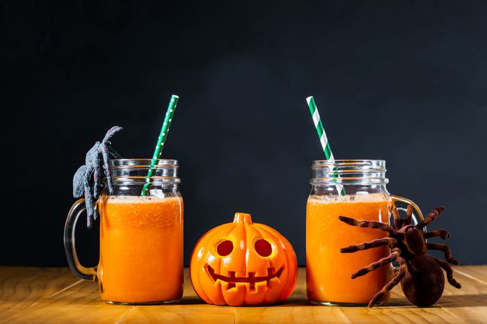 Haz puré la fruta con una licuadora. Luego agrega 25 cl de leche muy fría a la fruta, añade el helado y bebe … ¡una receta de cóctel para ponerte la piel de gallina en Halloween!