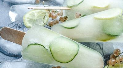 En primer lugar, hervimos a fuego lento durante 8 o 10 minutos las pasas blancas, con el azúcar y media tacita de agua. La dejamos enfriar y después pasamos por un colador para quitar las semillas. A continuación, agregamos el zumo del limón, ginebra y agua. Por último, incluimos la mezcla dentro del molde y añadimos algunas rodajas de limón y pepino dentro de cada uno.