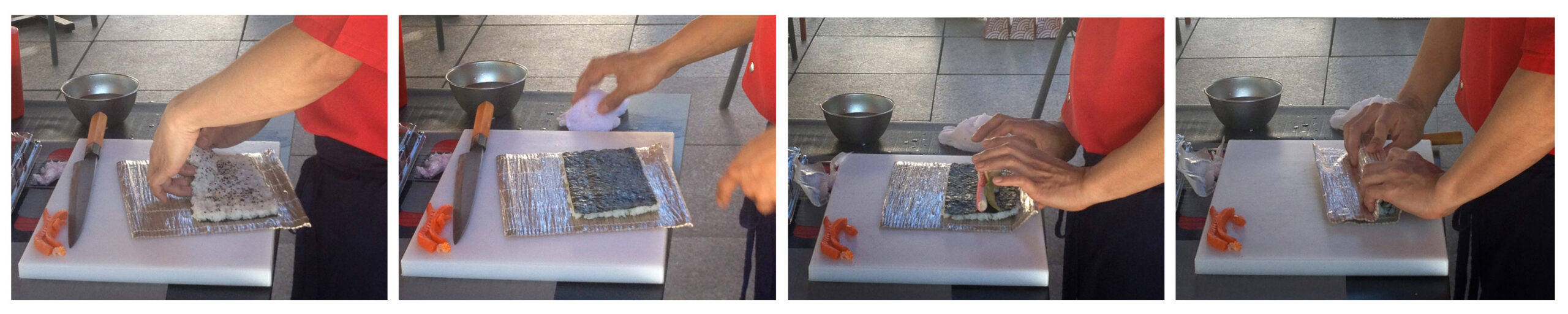 Para que no pierdas detalle del paso a paso a la hora de enrollar tu maki aquí tienes unas imágenes que te pueden servir de mucha ayuda: