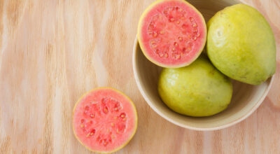 Fruto del guayabo, es una baya redonda u oval, de piel lisa de un color que varía del verde al amarillo claro. Dependiendo de la variedad, la pulpa es rosa, amarilla pálida o roja. Se puede comer natural, en zumo, sorbete, en almíbar o tarta de frutas. No es muy frecuente encontrarla fresca porque es muy delicada y, por lo tanto, difícil de importar.