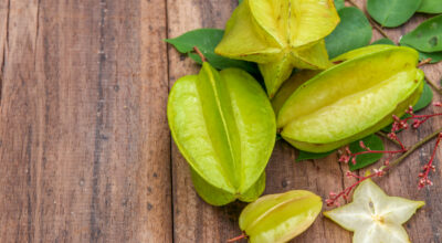 Se trata de una baya alargada, de 5 a 8 cm de largo y con 5 puntas que dibujan estrellas al cortarla en rodajas. El color de la carne varía de blanco a amarillo. La textura es parecida a la de una manzana, fresca, crujiente, jugosa y con un gusto que recuerda anuestro melón.