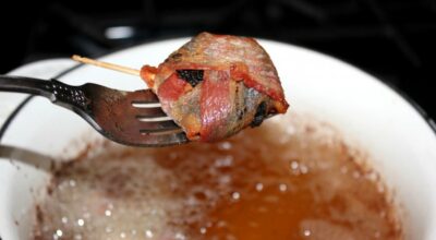 La forma de prepararlas es muy sencilla: tan solo tienes que envolver cada una de las galletas Oreo en dos lonchas de bacon fresco hasta que queden totalmente cubiertas. Cuando hayas formado estas pelotas de bacon, asegúralas con un par de palillos. Después, ha llegado el momento de llevar este experimento a la freidora. Te recomendamos que utilices aceite de girasol bien caliente y que solo las frías un par de minutos hasta que el bacon esté dorado.