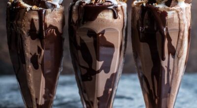 Batido de chocolate: Utiliza helado de chocolate para simplificar las cosas. Si prefieres utilizar chocolate en tableta, derrítelo primero con nata para obtener una mezcla muy lisa. Déjalo enfriar antes de incorporarlo al batido.