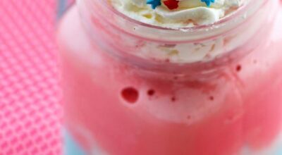 Bate la leche y dos bolas de helado en una mezcladora para obtener una mezcla espumosa y homogénea. Viértela en un gran vaso, decóralo a tu gusto y saboréalo inmediatamente. ¡Riquísimo!