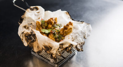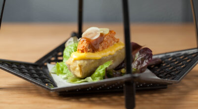 Como entrantes, os aconsejamos las Gyozas Chilangas (3,5 €), deliciosas empanadillas al vapor rellenas de carnitas, chipotle, salsa criolla y menta, así como los Baos Criollos (4 €) con panceta, ají amarillo, criolla, barbacoa rocoto y boniato crujiente.