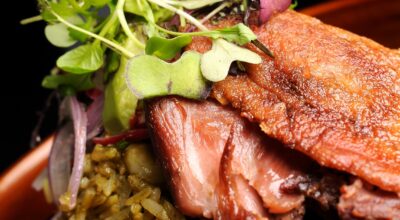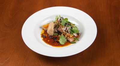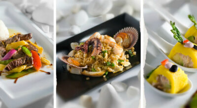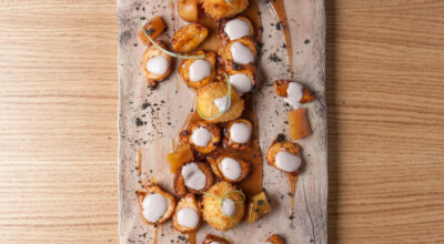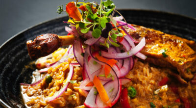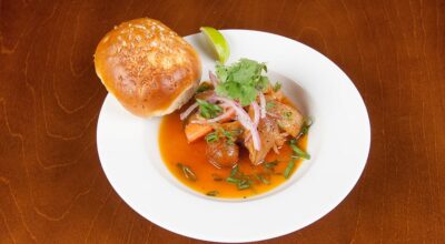 Para un bocado ligero, elige el Anticucho de Pez Mantequilla (19 €), de camote glaseado, marinado de ají panca y las Zamburiñas (18 €) a la mantequilla de limón con ajo crocante. Y si quieres algo más contundente, no dejes de probar el Arroz con Pato (27 €) salteado en wok con criolla de rabanitos y salsa acebichada y el Seco de Cabrito (29 €) en salsa de cilantro y vino blanco, alubias blancas y salsa criolla.